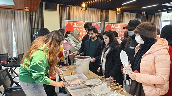 这场新春游园会远不止是一场文化展示,更成为跨文化理解与交流的生动平台。来自20多个国家的学生们在体验中国传统技艺的同时,也分享着自己国家的文化习俗。“在我的国家,我们也有类似新年的庆祝活动,但这是第一次亲身体验中国新年的传统文化。”一位来自伊朗的姑娘在完成漆扇制作后,饶有兴趣地研究起中国结的编法。