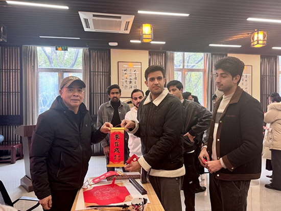 现场的国际学生见了也是跃跃欲试,在主理人的指导下尝试提笔书写。薛鹏德表示:“书法不仅是文字书写,更是中国人精神世界的表达。看到这么多外国同学对我们的文化产生兴趣并亲身体验,感到很欣慰。”